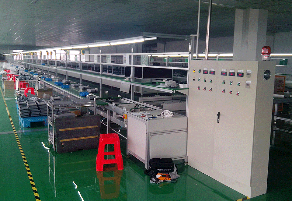 來料測試線機架腳架采用優(yōu)質(zhì)方通組焊制作,每2米一段,采用鍍鋅可調(diào)腳杯;線體皮帶護邊采用方管制作,沿線體兩側(cè)一路布置;承載采用鍍鋅滾筒,中心間距200㎜安裝一條,全線布置;輸送帶采用綠色PVC防靜電皮帶,厚2mm、寬500mm無縫熱縮接駁,皮帶面低于機身護邊8㎜;照明系統(tǒng):采用優(yōu)質(zhì)方管組焊制作,選用40W單支帶罩T8電子節(jié)能支架,全線布置。工作臺: 配對面坐工作臺,優(yōu)質(zhì)木夾板制作,面貼綠色防靜電膠皮,半圓木條包邊。