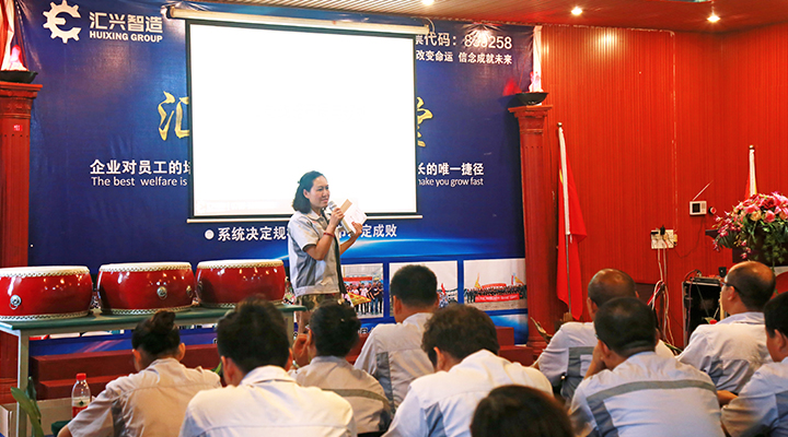 在會議中,行政部經理袁侃對公司現有管理制度的互聯網考勤使用作了一個詳細的說明,進一步強化了公司的考勤制度。隨后匯興智造副總經理辛曼玉跟我們闡述了公司的戰略布局與規劃。辛副總說,她在梳理公司擁有的財產中總結,人才是公司最重要的財富,一個企業有賺錢的人,花錢的人,管錢的人,不管哪類人才,只有充分發揮集體的力量,才是一支會打勝戰的隊伍。沒有完美的個人,只有完美的團隊,每個人的工作態度很重要,希望各個部門全力以赴,學習人民軍隊“聽黨指揮,作風優良,能打勝仗”優良傳統,共同推進匯興智造的發展繁榮。
