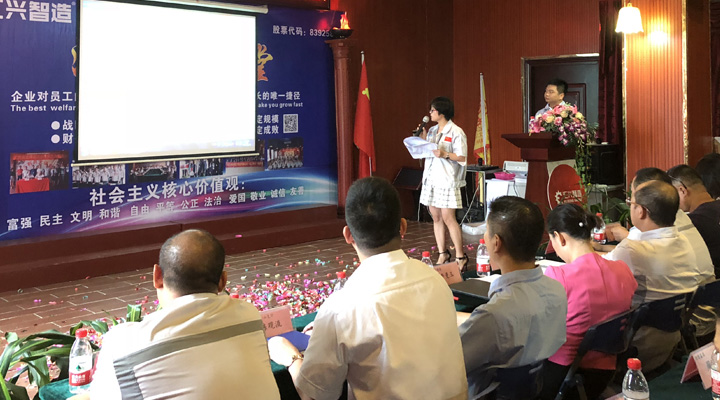 2017年9月28日,廣東匯興精工智造股份有限公司(股票代碼:839258)在匯興學(xué)校召開9月份月度大會(huì)及重要簽約儀式。董事長鐘輝,辛主任,東莞證券郭副總裁一行,大信會(huì)計(jì)事務(wù)所肖所長一行,華商律師所姜先生一行,中國銀行大嶺山支行葉行長,建設(shè)銀行大嶺山支行陳行長,東實(shí)集團(tuán)潘經(jīng)理等一系列特別嘉賓及匯興智造各分子公司代表參加此次大會(huì)。人資行政部經(jīng)理袁侃主持本次會(huì)議。