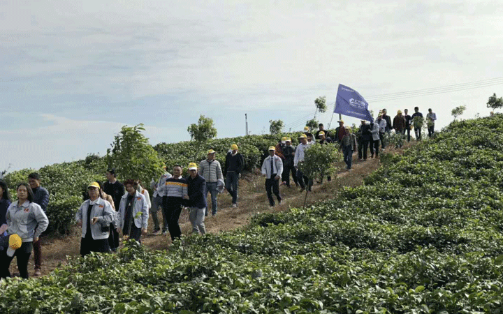 英德古稱英州,以生產紅茶著稱于世,是中國著名茶鄉。旅途第一站:英德茶園。茶園占地面積極廣,陽光里,微風拂過,一片碧波蕩漾,空氣中彌漫著淡淡的清香。“夢想之旅”的團隊成員們行走其間,心曠神怡。茶園主人耐心地給大伙兒介紹茶葉的制作過程:采摘、萎凋、揉捻、發酵、干燥等。如今的茶葉不再是純手工制作,每一個環節都由相應的設備操作。看到機器設備,大伙兒就忍不住向茶園主人獻計:建立一套自動化流水生產線。匯興智造的精英們啊,走到哪兒,都能發掘商機,旅途也是夢想的征程,不忘初心,攜夢前行。