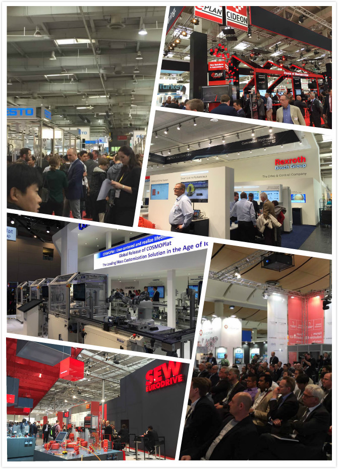 第一天,考察團來到了德國漢諾威工業博覽會現場,一睹全球最有影響力的工業會展。2017年的德國漢諾威工業博覽會(HANNOVER MESSE 2017)的主題是“產業集成-創造價值”。制造業最強陣營的德國、美國、日本工業巨頭展臺上都亮出自己的工業“云”,以“軟”為主??床灰姷能浖ㄟ^虛擬的互聯網,不僅改變了設備設計、生產和操作,也改變了工業習慣乃至消費習慣。虛實結合,虛擬越來越鑲嵌在實體生產和生活中。在這次觀展中,鐘董感受了前沿工業技術帶來的震撼,趁此考察機會,多借鑒優秀企業的成功經驗。