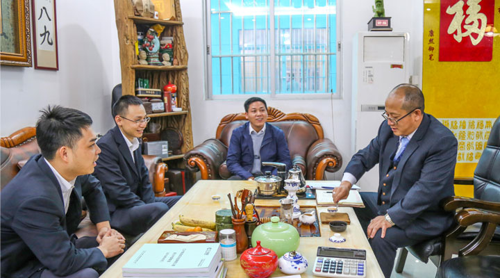 2017年39日,工商銀行大嶺山支行副行長胡豪、廣東虹瑞智能設備股份有限公司董事長龔建鋒、中國KMC鏈條專家陳宏詮經理一行蒞臨廣東匯興精工智造股份有限公司(股票代碼:839258參觀交流。匯興智造董事長鐘輝代表全體員工對貴賓的到訪表示熱烈歡迎,并陪同參觀公司企業文化及工業4.0智能裝備體驗館。