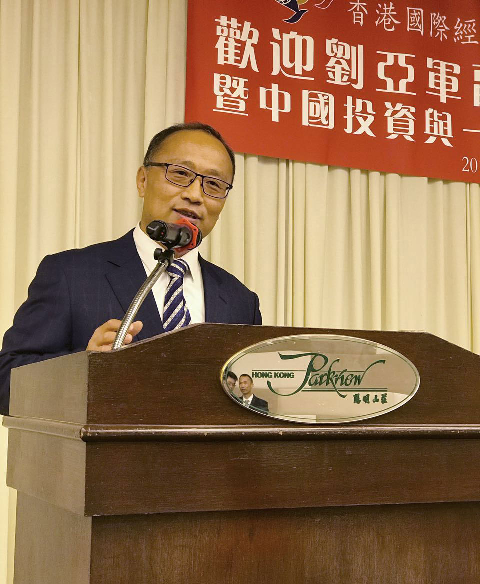 201738日,匯興智造董事長鐘輝受邀參加由香港國際經貿合作協會會董委員會在港島陽明山莊舉辦的“歡迎劉亞軍副部長履新晚宴暨中國投資與一帶一路新年報告會”。