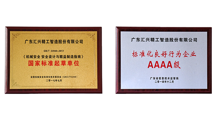 2017830日,經(jīng)廣東省質(zhì)量技術(shù)監(jiān)督局、省標準化協(xié)會專家組的現(xiàn)場評審,廣東匯興精工智造股份有限公司(股票代碼:839258)再度獲評為“AAAA級標準化良好行為企業(yè)及《機械安全 安全設(shè)計與精益制造指南》國家標準起草單位,在行業(yè)中到示范引領(lǐng)作用。