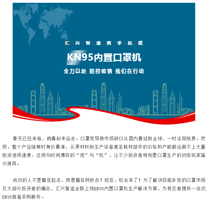 重磅!匯興智造KN95內置口罩機正式上線,方便調試,穩定高效!